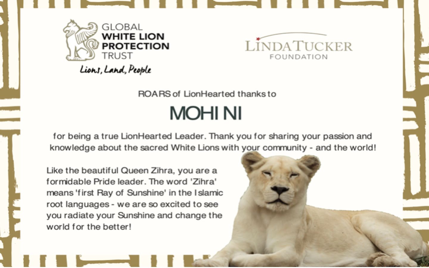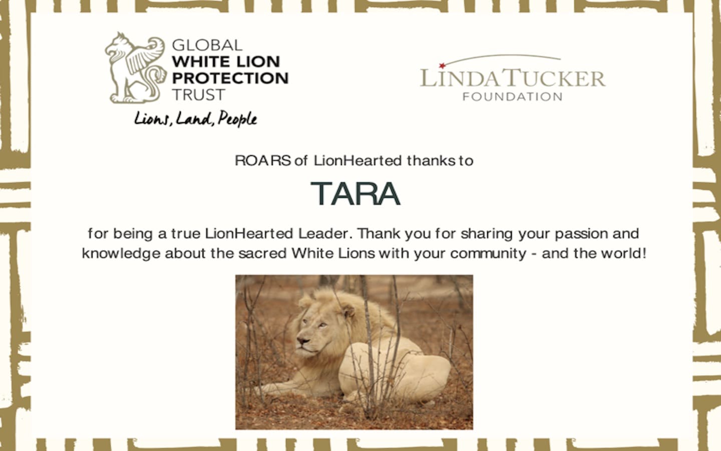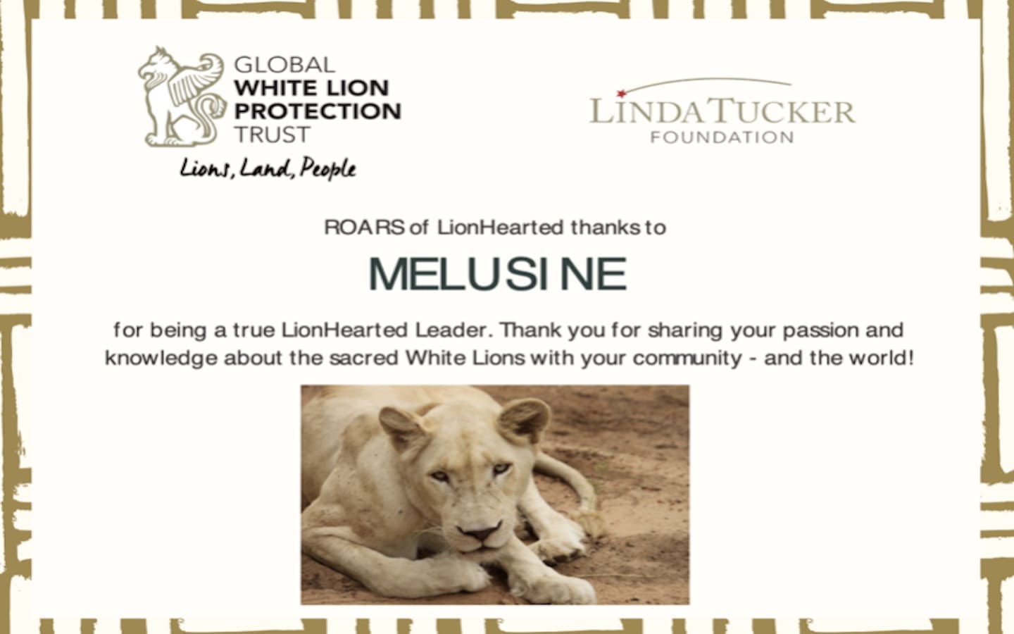 The Linda Tucker Foundation also delivered 3 certificates to encourage the young LionHearts.